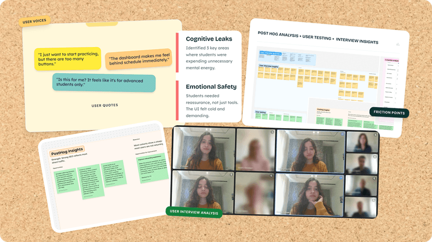 I conducted deep-dive sessions with students across three learning stages to map where confidence broke down.